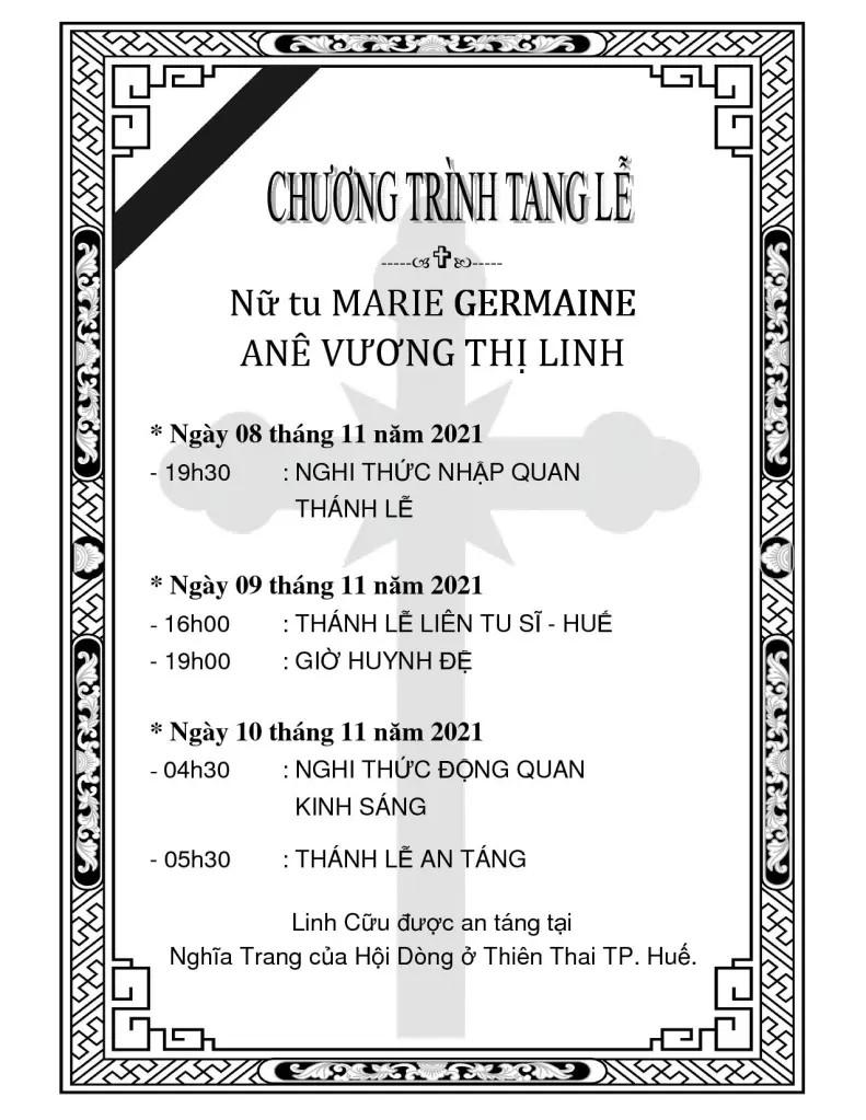 Con xin đính kèm Ái Tín và chương trình tang lể của Soeur Bà Marie Germaine Anê Vương Thị Linh.