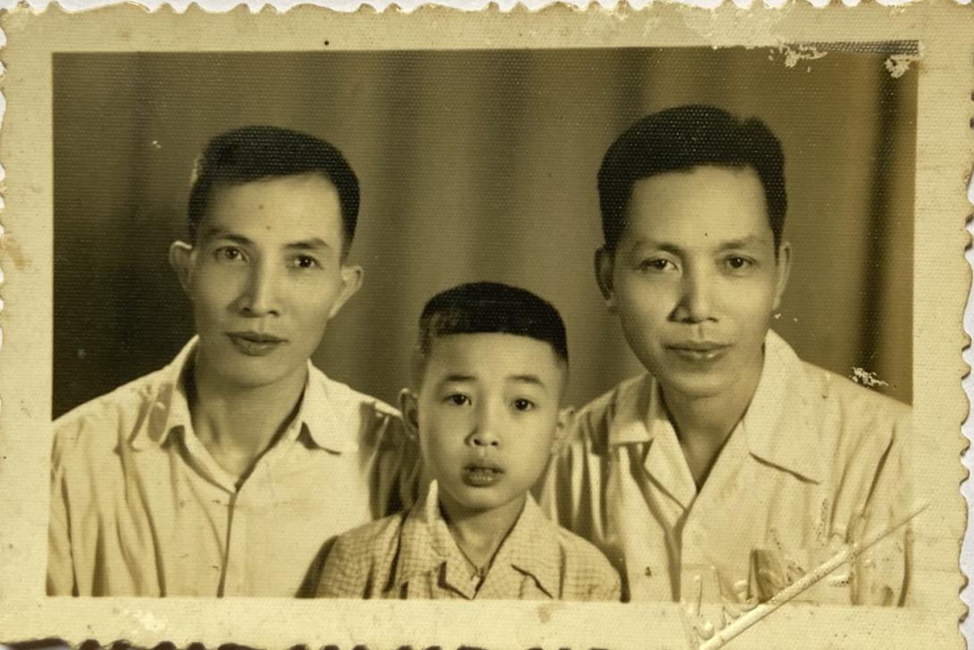 Ông Vương Đình Lương (bên trái) và con (chính giữa) Vương Đình Sanh và bõ đỡ đầu