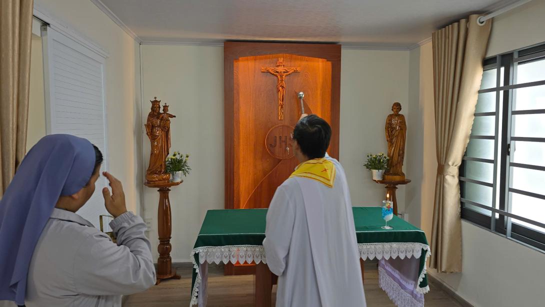 Sau Thánh lễ, Cha xứ Phêrô đã chủ trì nghi thức làm phép nhà Thánh Mẫu do nhà dòng tiếp nhận từ gia đình ông bà cố Vương Đình Thông. Và từ nay, nơi đây chính thức trở thành chi nhánh hoạt động tại Đà Lạt của dòng Con Đức Mẹ Phù Hộ.